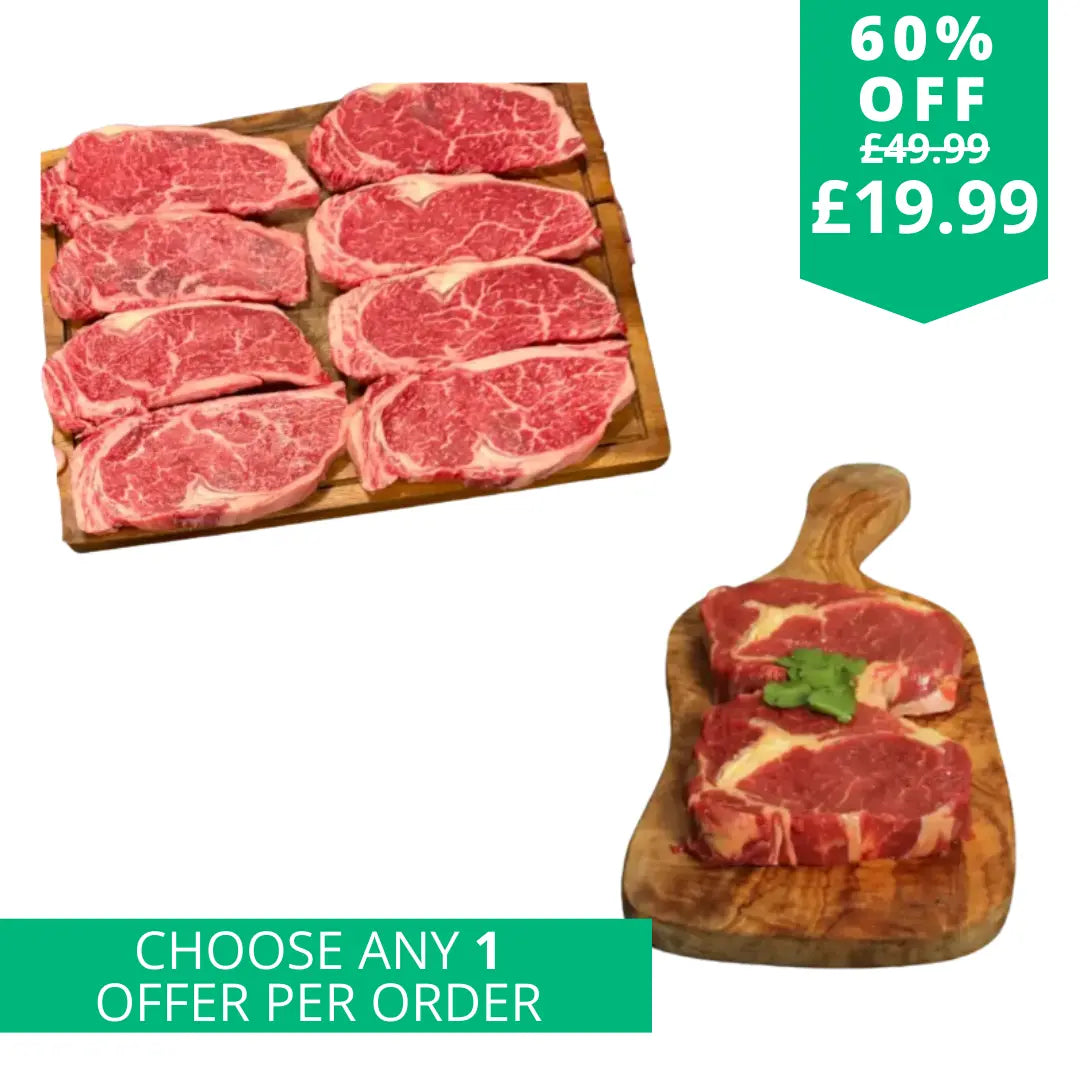 2-4-1 British sirloins + 2 free ribeyes