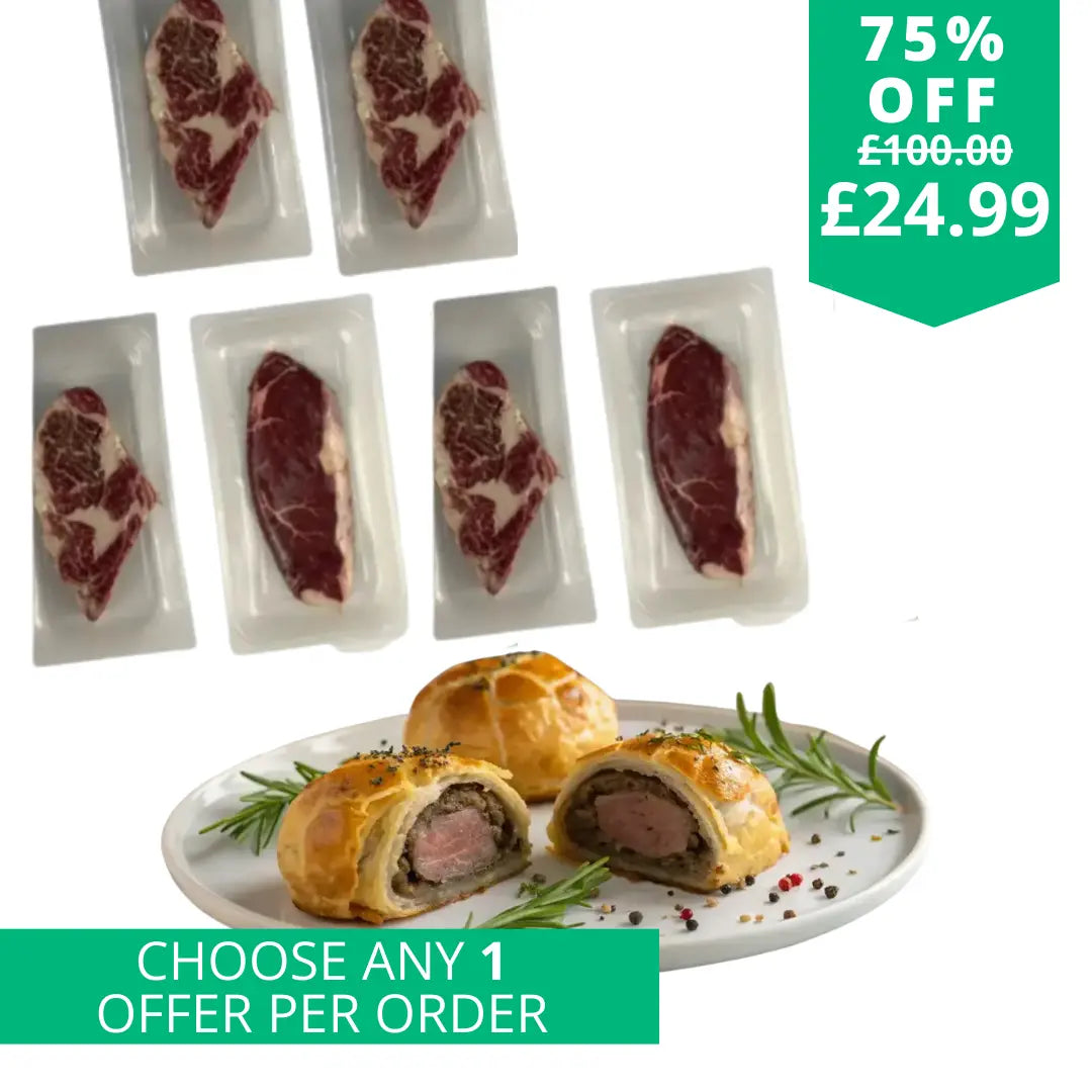 2 British Fillet wellingtons Half price + 6 Free British steaks
