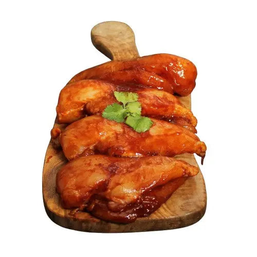 These are premium chicken fillets infused with the gorgeously sweet and smoky flavour of our own unique BBQ chicken marinade. Perfect roasted, grilled, or fried, serve this chicken with greens and chips!