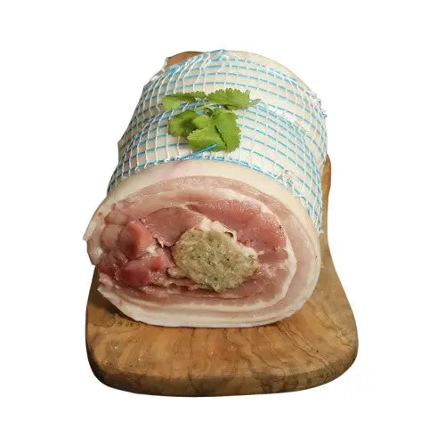 Buy some luxurious belly pork with sage and onion stuffing from us, great for the BBQ.