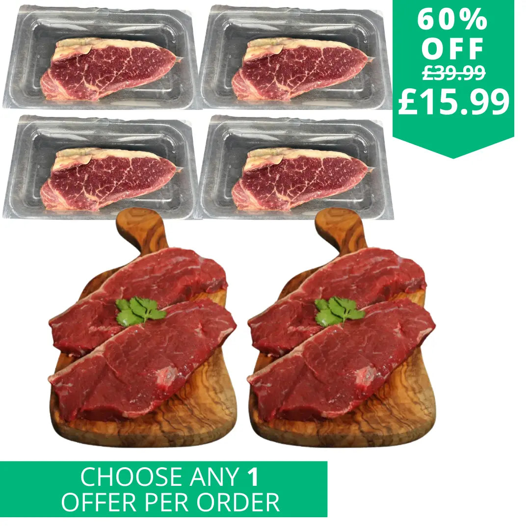 - 4 mixed British retail steaks ribeye Sirloin and rump steaks